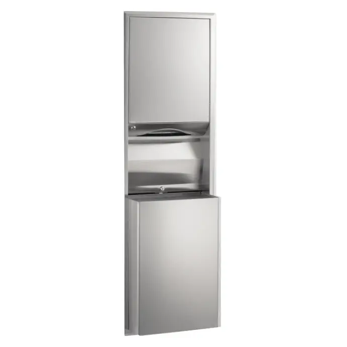 Optimize space with multi-function units from Bobrick and ASI that combine paper towel dispensers and waste receptacles into a single, sleek recessed cabinet.