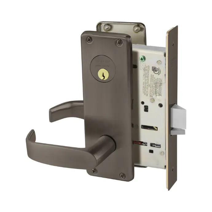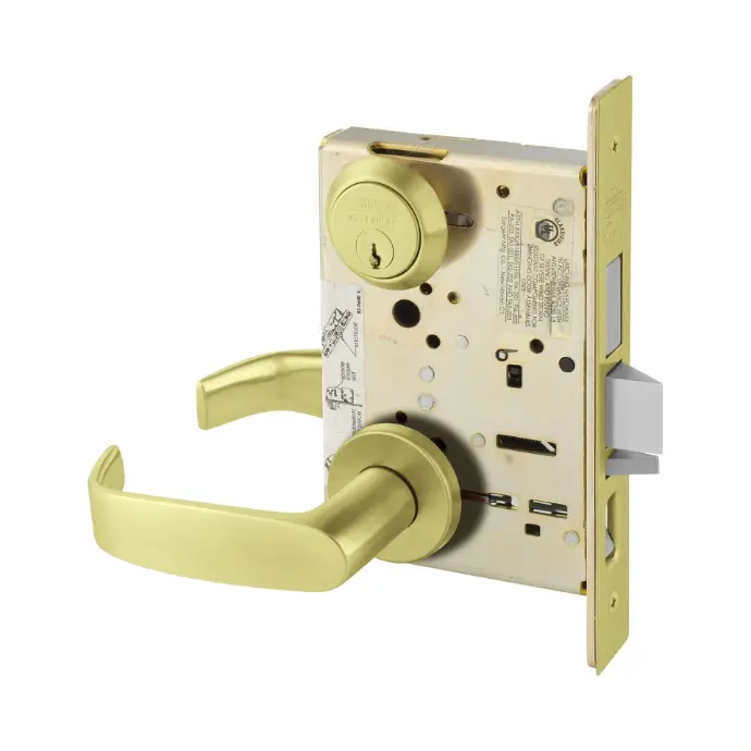 Electrified 8200 Series locks allow for remote locking and unlocking via card readers or security systems. Available in Fail-Safe (power to lock) or Fail-Secure (power to unlock) configurations, these locks are the gold standard for high-security perimeter doors and office suites. They provide seamless electronic access control while retaining the mechanical strength of a Grade 1 mortise lock.